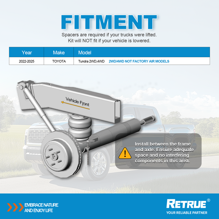 - Compatibilité véhicule - Kit de suspension arrière à airbags RETRUE pour Toyota Tundra 2WD 4WD 2022 à 2025, remplacement parfait pour le kit Firestone Ride-Rite 2628