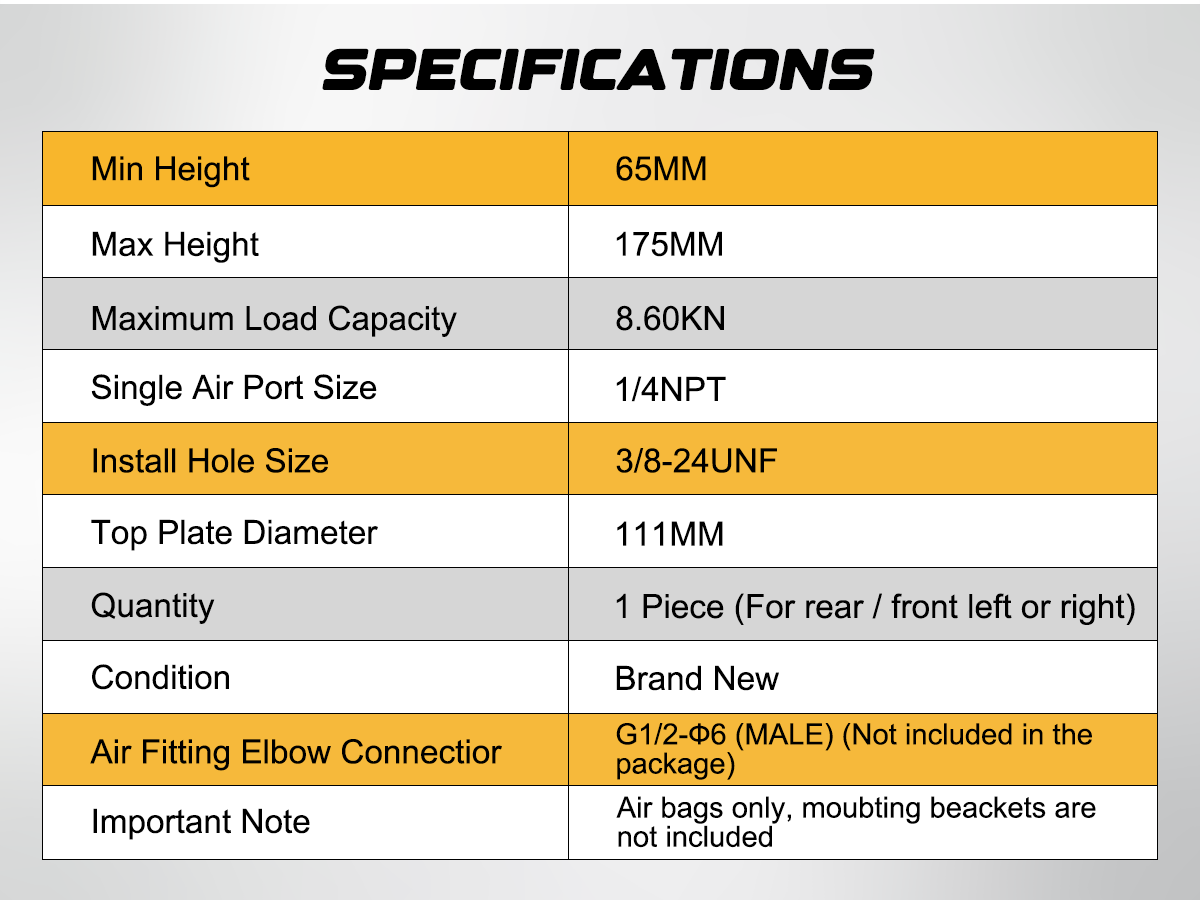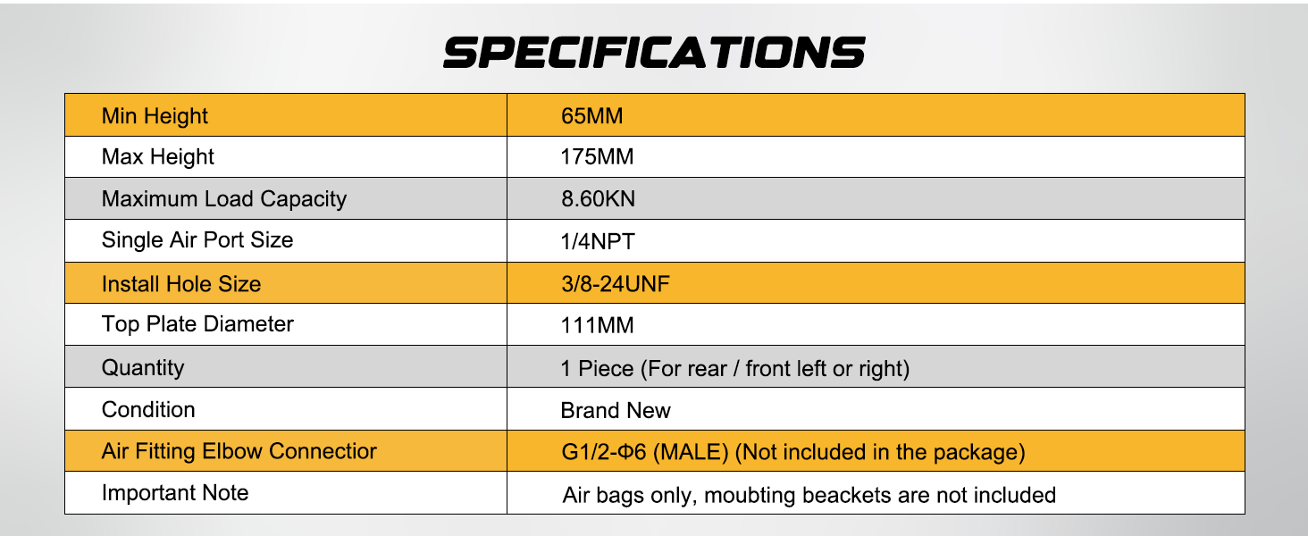 - Versatile Installation - Unlike other kits, this set includes two individual airbags, offering more flexibility for custom installations. Perfect for modification enthusiasts looking to adapt the kit to fit a variety of vehicle frames. (Note: This product does not include mounting brackets.)