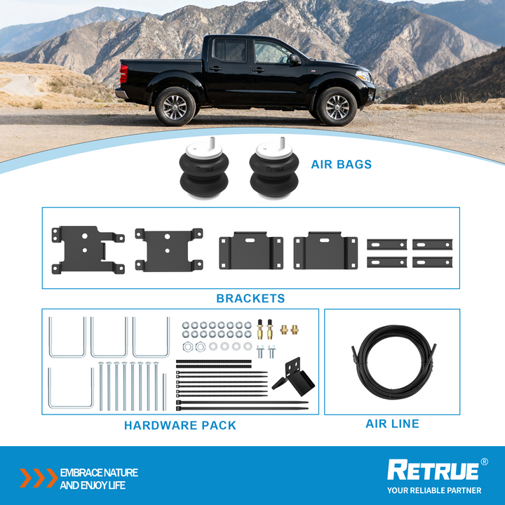 Built for durability and long-term performance, this Nissan Frontier air suspension kit is backed by RETRUE’s dedicated customer support and satisfaction guarantee, giving you confidence on every tow, trip, and task.